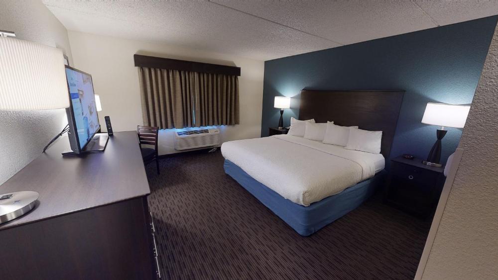 Features a flat-screen cable TV, a microwave and refrigerator.
